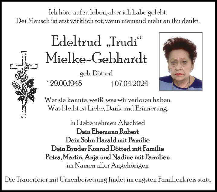 Kondolenzbuch von Edeltrud Mielke-Gebhardt