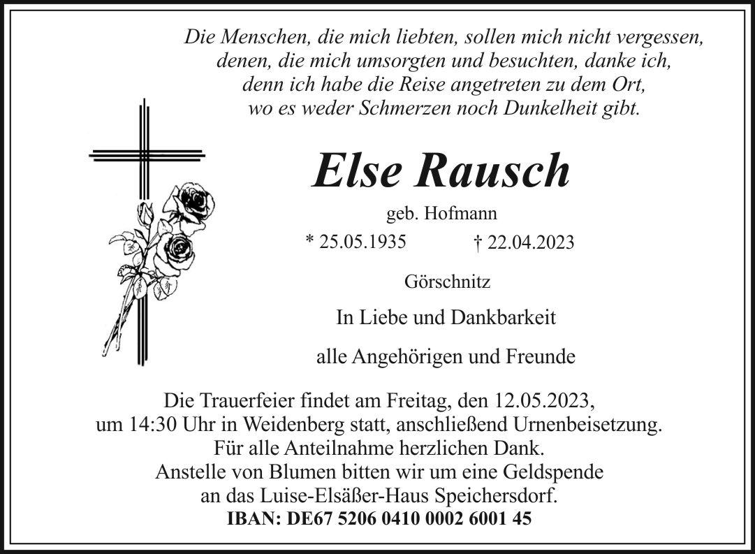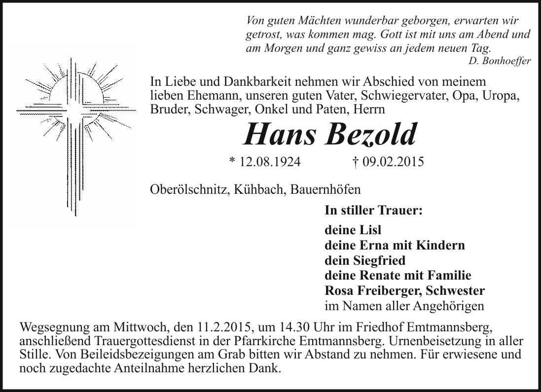 um 14:30 Uhr in Weidenberg statt, anschließend Urnenbeisetzung.