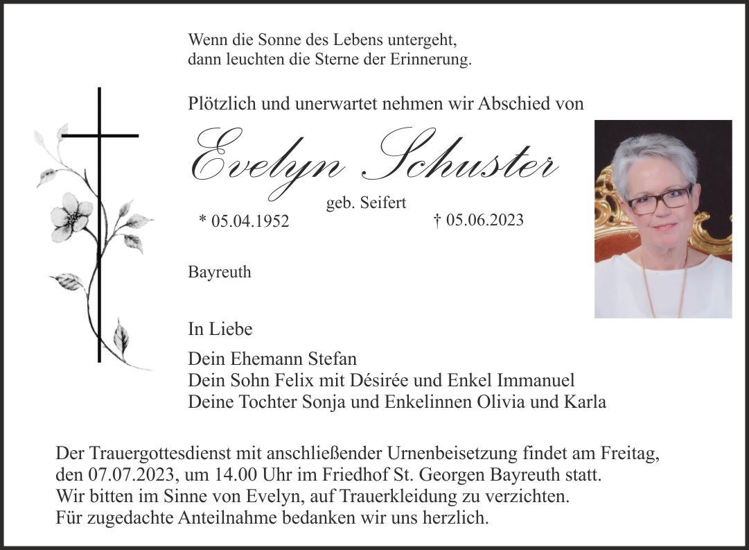 Wir bitten im Sinne von Evelyn, auf Trauerkleidung zu verzichten.