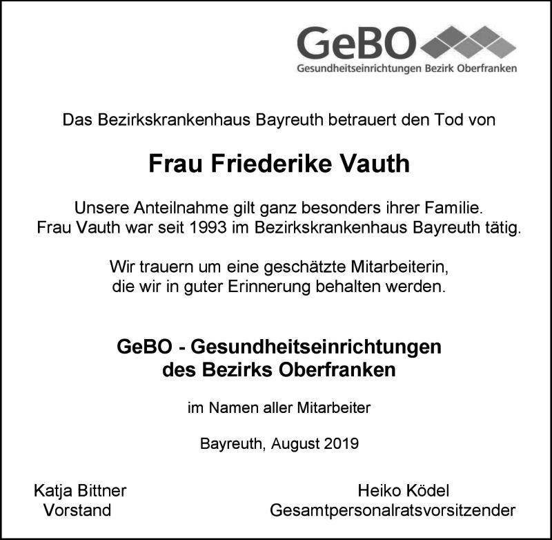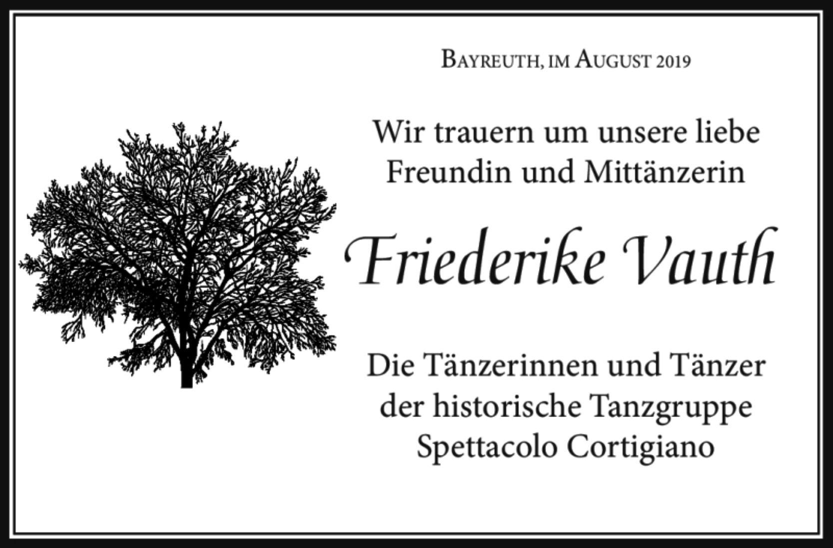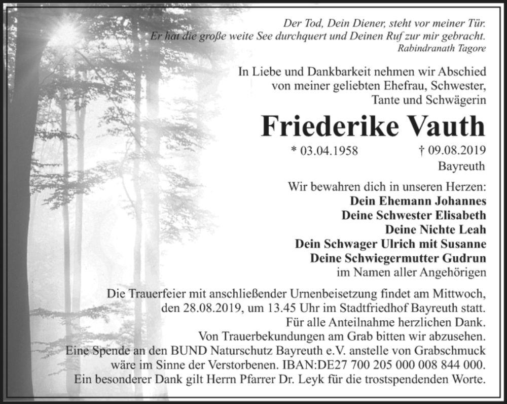 Die Beisetzung findet am 28.08.2019 um 13.45 Uhr auf dem Friedhof in Bayreuth (Stadtfriedhof) statt.