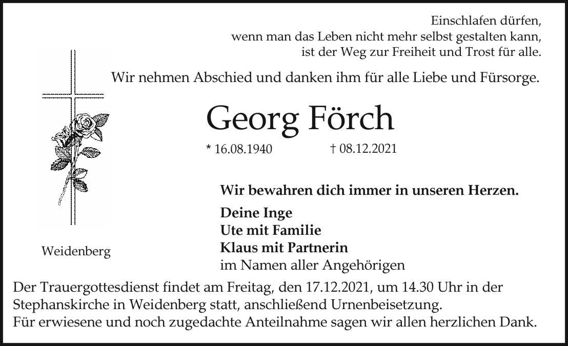 Der Trauergottesdienst findet am Freitag, den 17.12.2021, um 14.30 Uhr in der Stephanskirche in Weidenberg statt, anschließend Urnenbeisetzung.