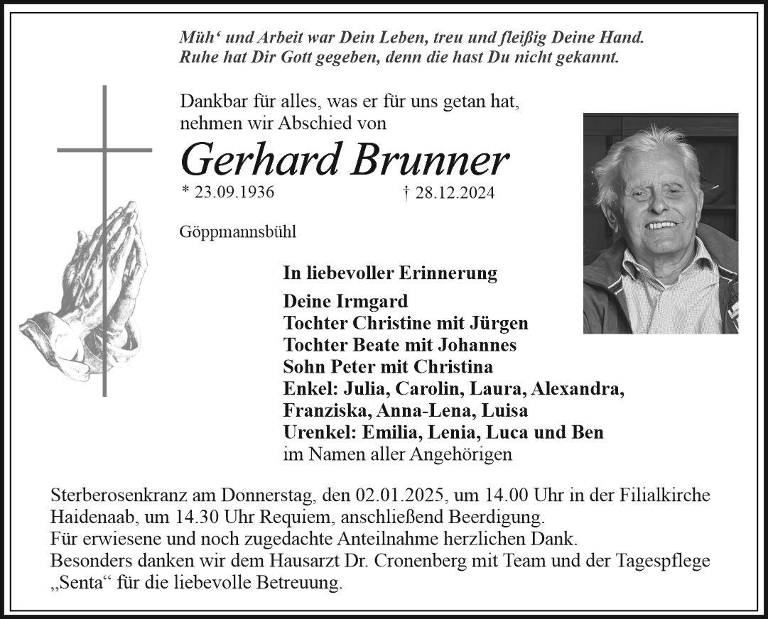 Sterberosenkranz am Donnerstag, den 02.01.2025, um 14.00 Uhr in der Filialkirche Haidenaab, um 14.30 Uhr Requiem, anschließend Beerdigung.