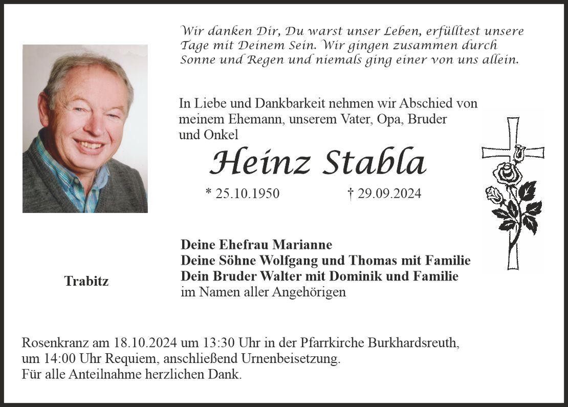 Liebe Frau Stabla,wir möchten Ihnen und Ihrer Familie auf diesem Weg unser herzliches Beileid und unsere aufrichtige Anteilnahme aussprechen.