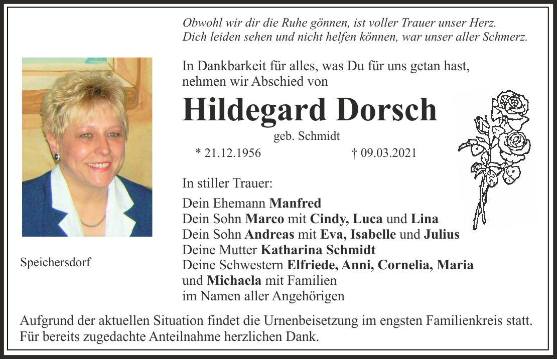Die Beisetzung findet auf dem Friedhof in Speichersdorf statt.