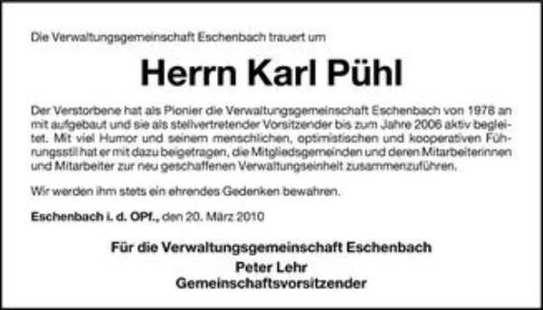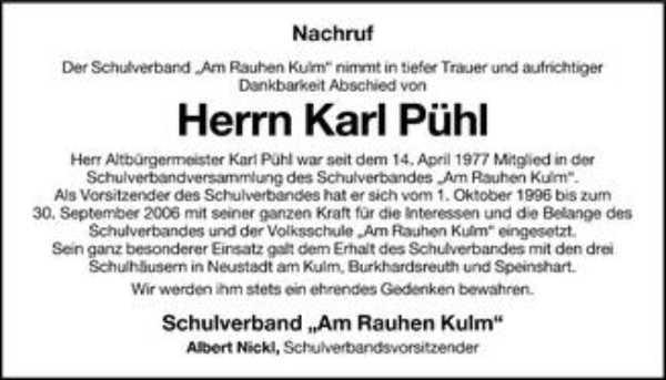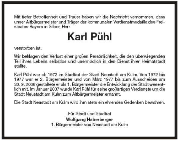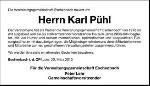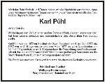 Ableben unseres Freundes Karl Pühl erfahren. In unseren Herzen wird er immer in Erinnerung bleiben.