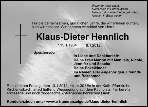 Kondolenzbuch von Klaus-Dieter Hennlich