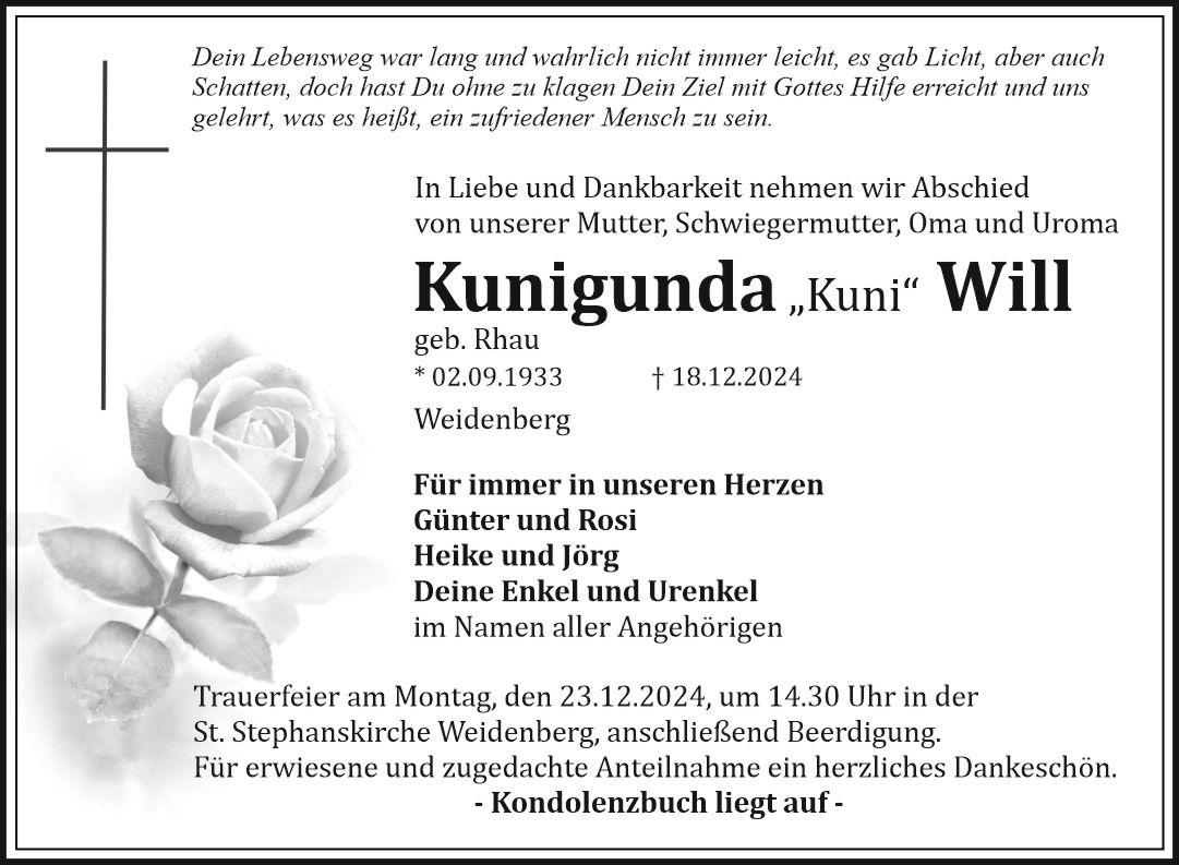 Trauerfeier am Montag, den 23.12.2024, um 14.30 Uhr in der