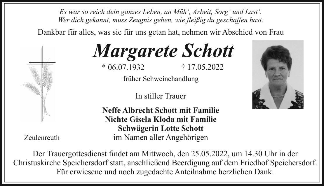 Christuskirche Speichersdorf statt, anschließend Beerdigung auf dem Friedhof Speichersdorf.