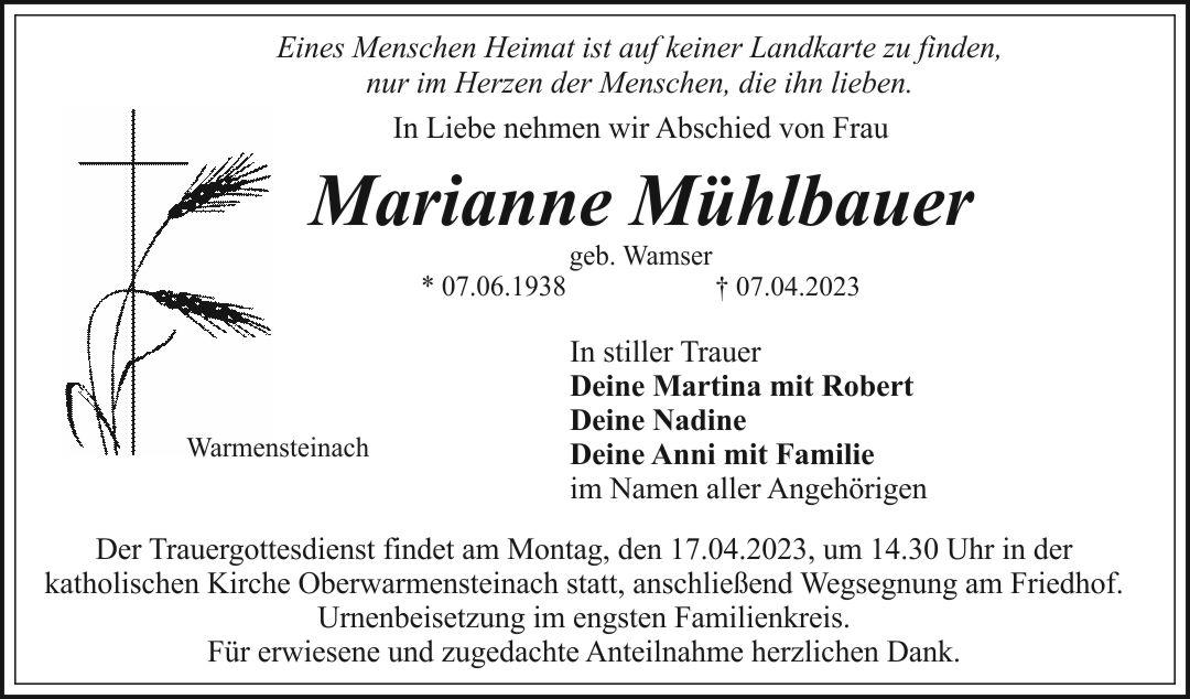 Der Trauergottesdienst findet am Montag, den 17.04.2023, um 14.30 Uhr in der