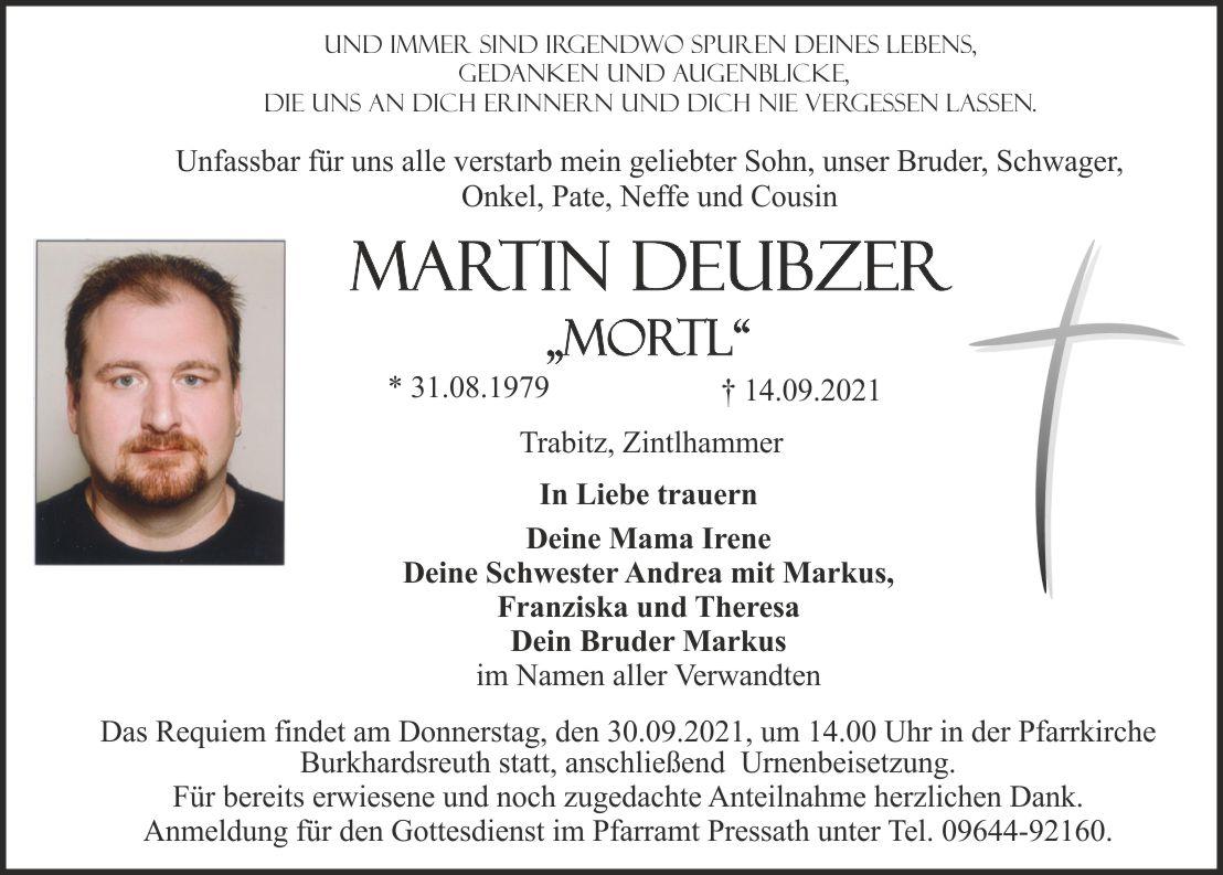 Das Requiem findet am Donnerstag, den 30.09.2021, um 14.00 Uhr in der Pfarrkirche Burkhardsreuth statt, anschließend Urnenbeisetzung.