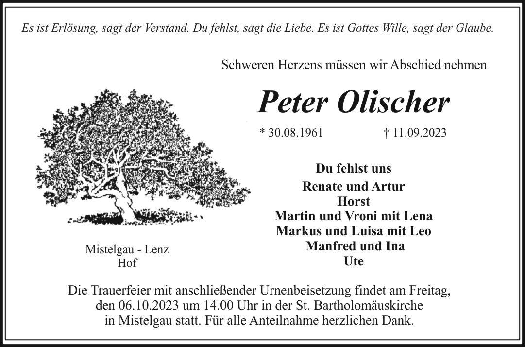 in Mistelgau statt. Für alle Anteilnahme herzlichen Dank.